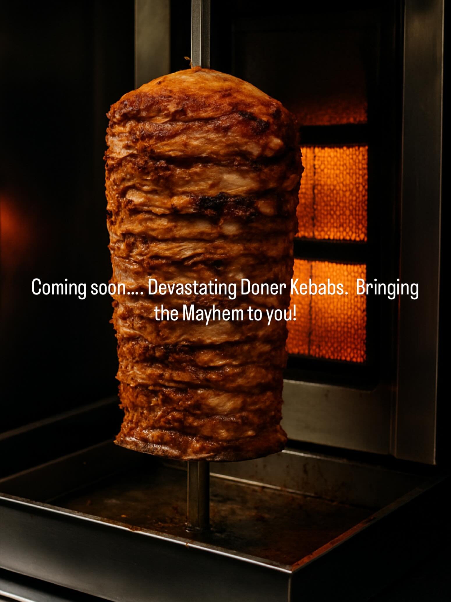Born in Turkey and made famous on the streets of Germany, this is the dish I discovered overseas. Think of it like a gyro’s bolder cousin — Middle Eastern in origin rather than Greek, built on spiced meat shaved fresh from the vertical rotisserie. Served in soft, pillowy flatbread with fresh veggies and tangy sauce, it’s packed with authentic flavor, distinctive spices, and pure Mayhem.